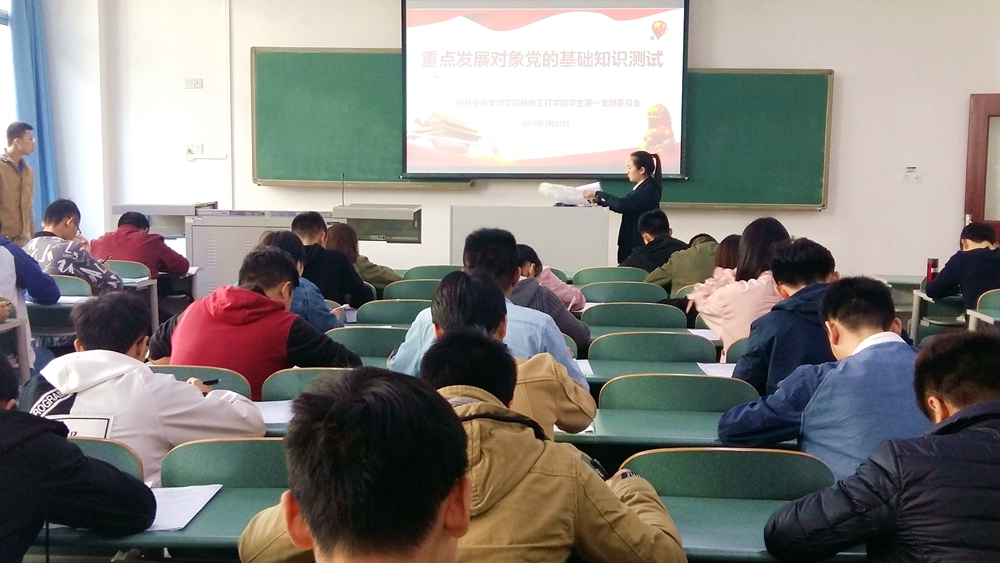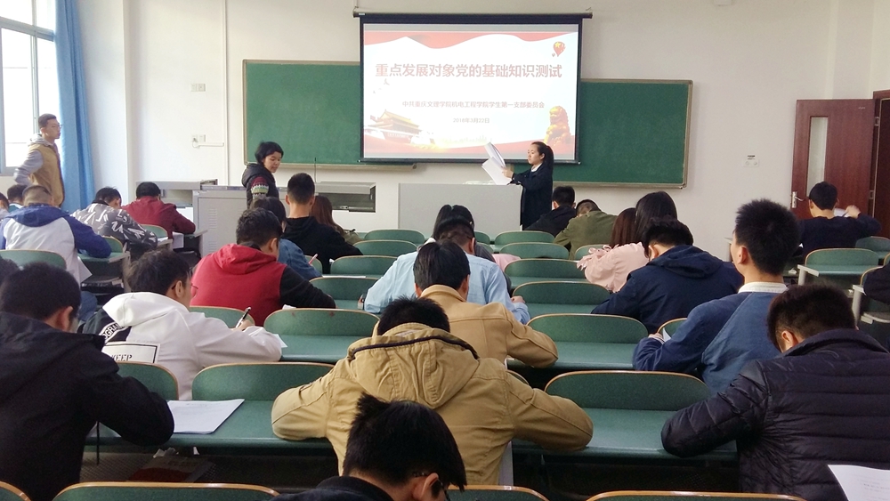 3月22日中午,学生一支部重点发展对象党的基础知识测试在知行楼A103举行。学院党总支书记曹勇、学生第一支部书记刘晓凤现场督考。