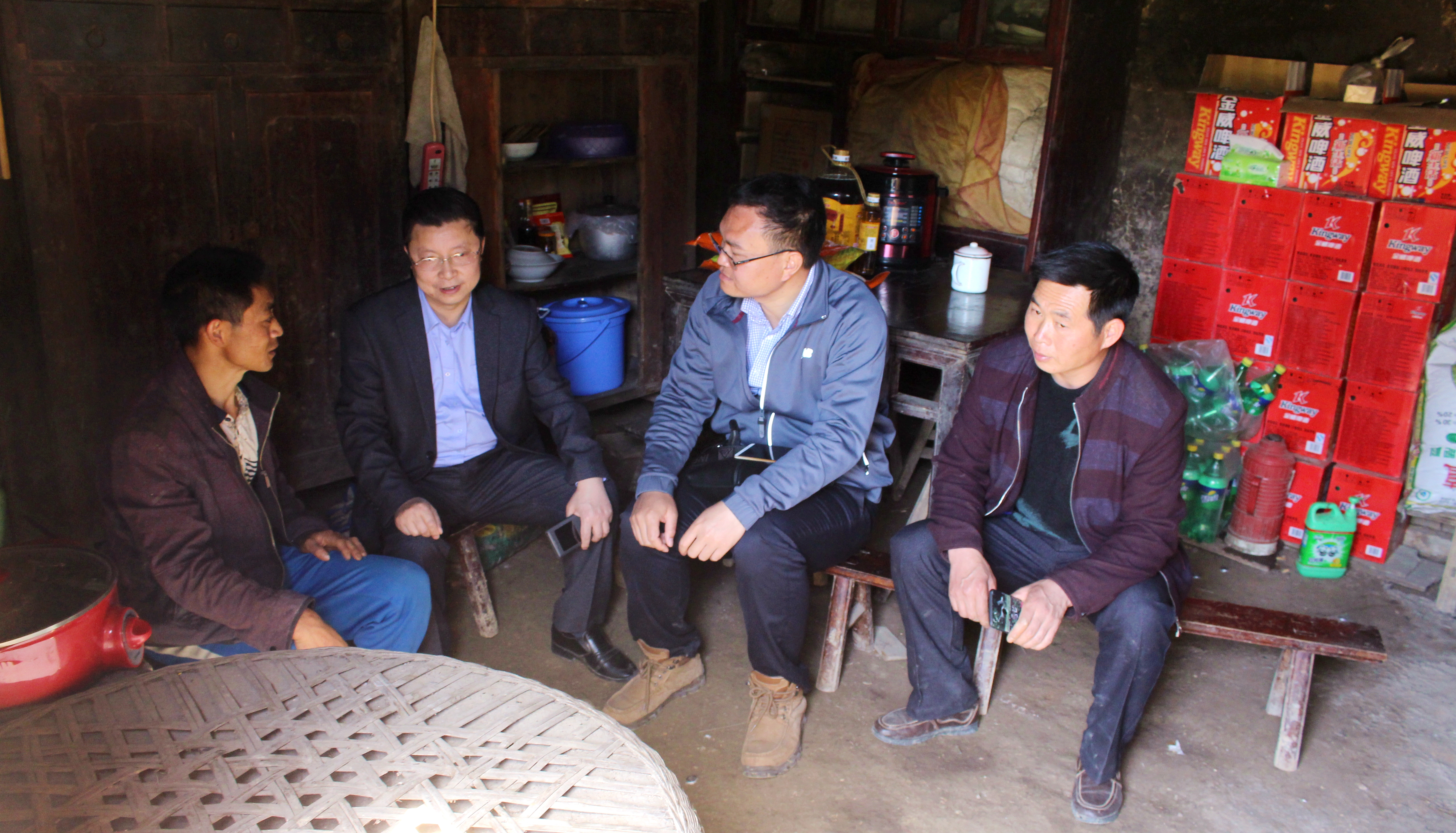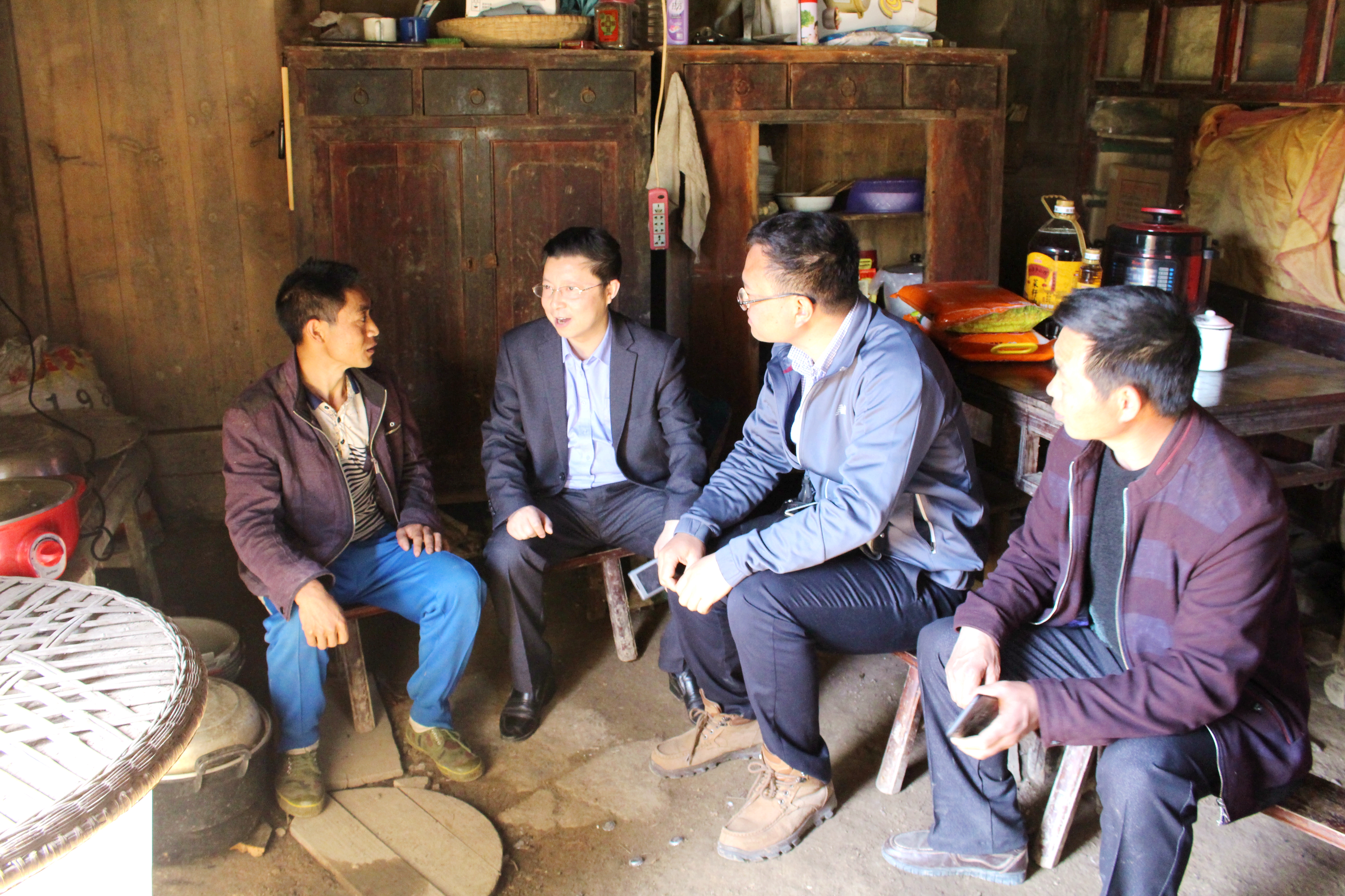 4月17日上午,经过近2个小时的翻山越岭,终于来到位于高山之巅的结对帮扶对象黄宗学家。曹勇代表学院送上了米、油等慰问品和3000元慰问金,并详细了解了他的身体状况和目前面临的主要困难。黄宗学因身体受伤无法从事重体力劳动导致贫困,孤身一人独自居住在一间不足十平米的土坯危房中,家里没有任何值钱的家俱,甚至连一台电视也没有,境况让人揪心。在与黄宗学交流的过程中了解到,他目前最急需的是要改造即将垮塌的房屋,解决居住的问题,下一步思考如何发展产业实现脱贫的问题。