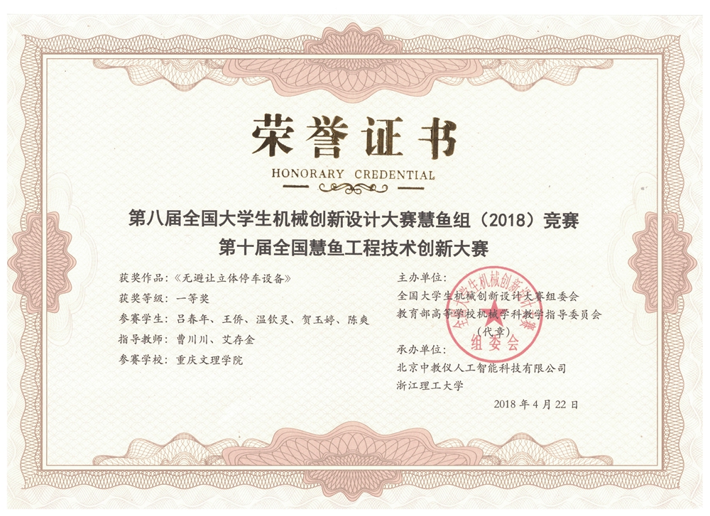 mansion88主页学子喜获第八届全国大学生机械创新设计大赛慧鱼比赛一等奖