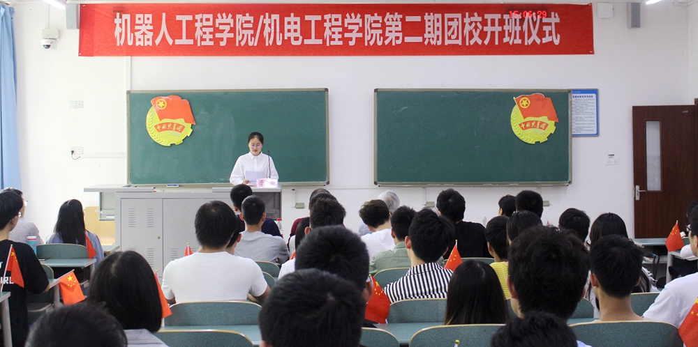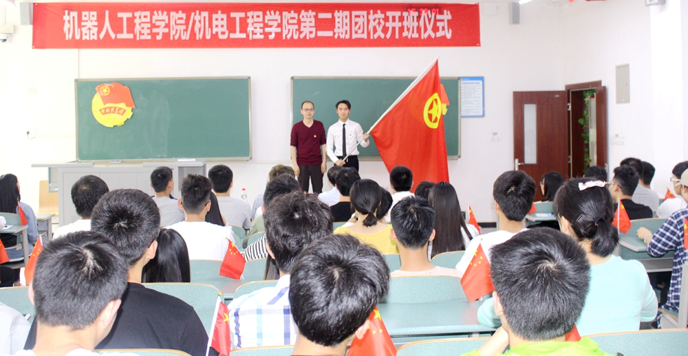 开班典礼在齐唱团歌声中拉开帷幕。郭岱鑫带领全体学员重温入团誓词,2016级机械电子工程向小梅同学代表培训学员发言,她以习近平总书记“五•四”讲话精神为指导,倡议全体学员要明确当代大学生肩负的责任和义务,做一个有执着信念、有优良品德、有丰富知识、有过硬本领的优秀青年。李兴成宣读了第二期团校管理办法,强调参加培训的学员一定要不忘初心,遵守纪律,积极参加活动,在团校培训中创先争优,争做优秀培训学员。