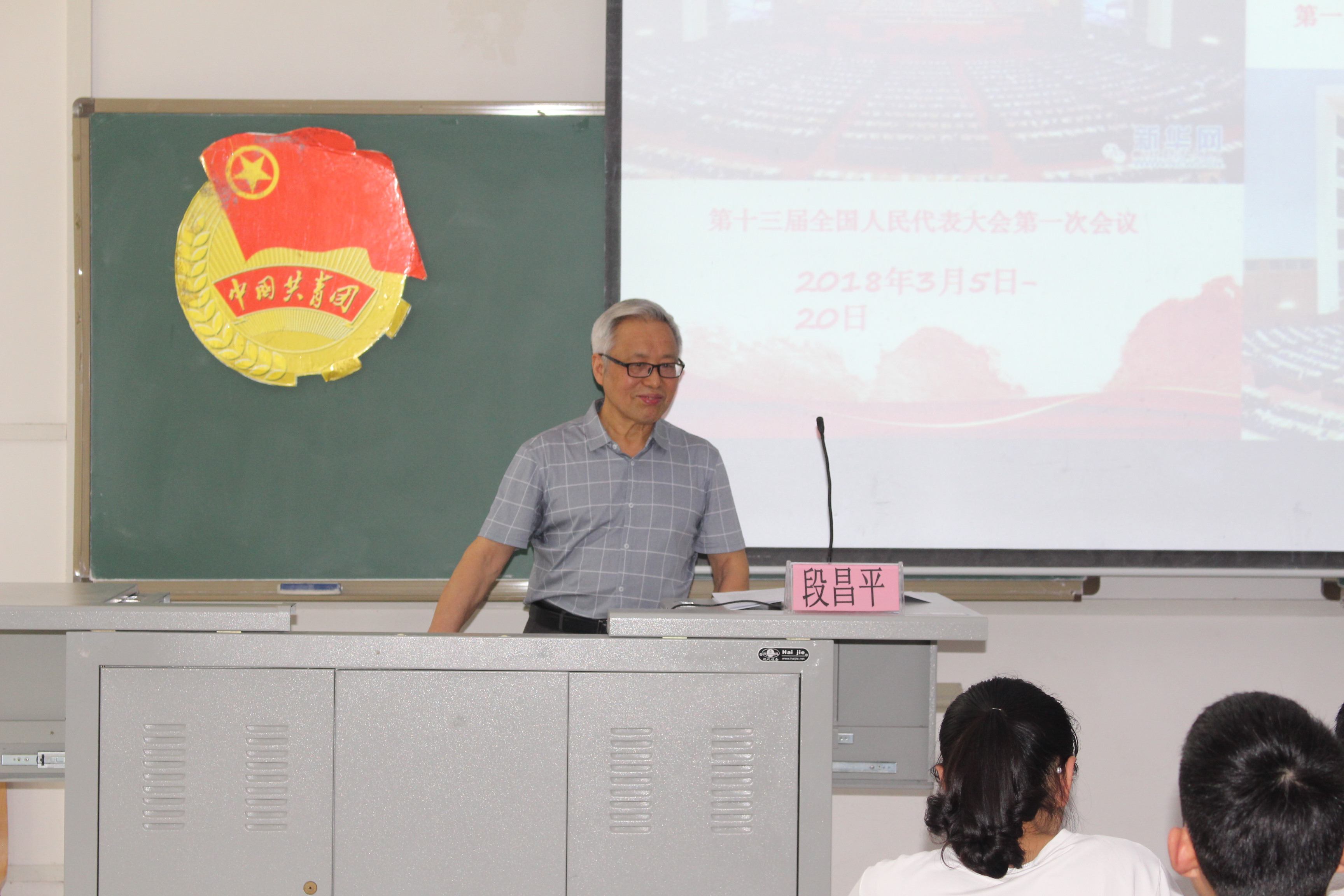 典礼结束后,特邀党建组织员段昌平为学员们授课。他以今年的两会主要精神和当代青年的责任担当为主要内容,鼓励同学们争做新时代的弄潮儿,新时代的优秀青年,树立社会担当意识。