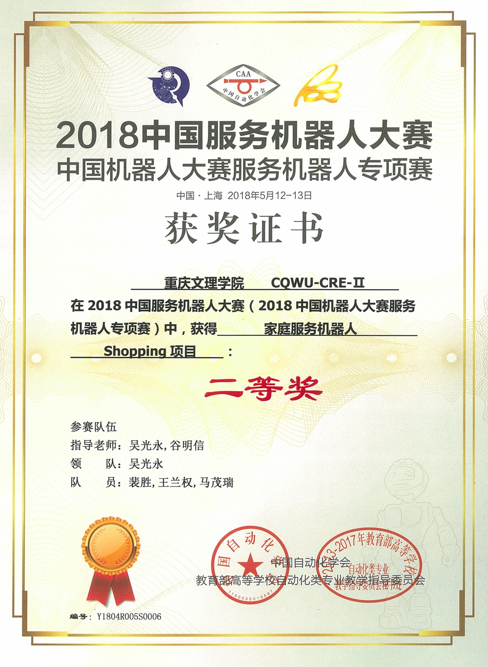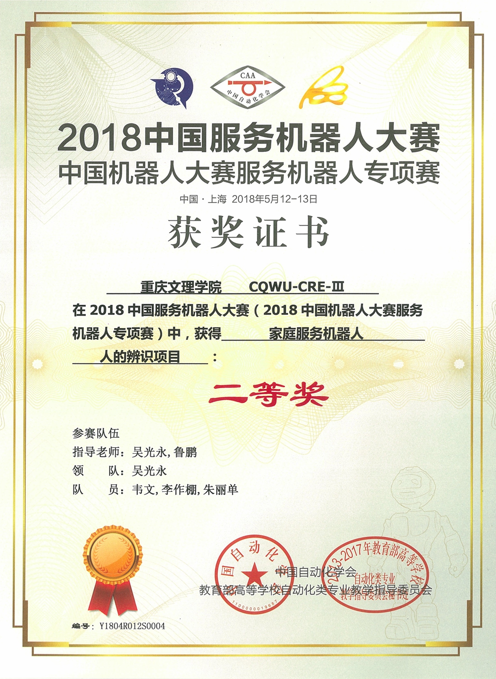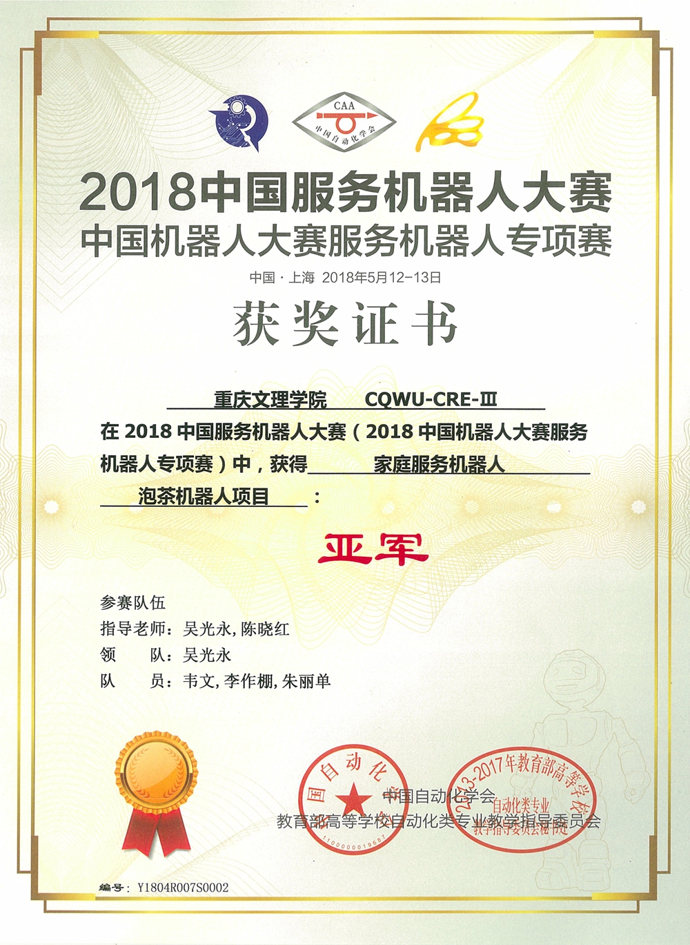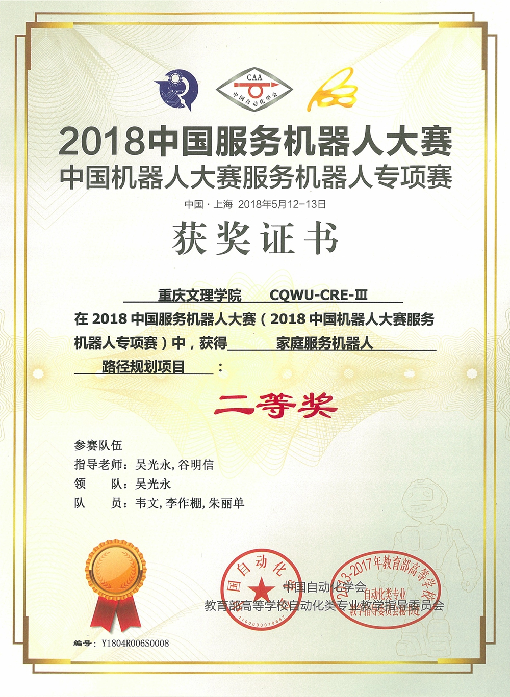 mansion88主页学生喜获2018中国服务机器人大赛一等奖等多项奖励