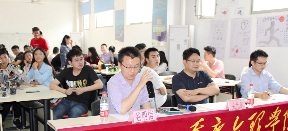 5月23日下午,第二届机器人文化节系列活动之一——机器人创新设计大赛在红河A区创业园路演厅举行。机械电子工程系主任吴光永、副主任谷明信、机器人与智能装备研究院副院长鲁鹏出席本次比赛并担任评委。本比赛项目由谷明信全程提供技术指导。