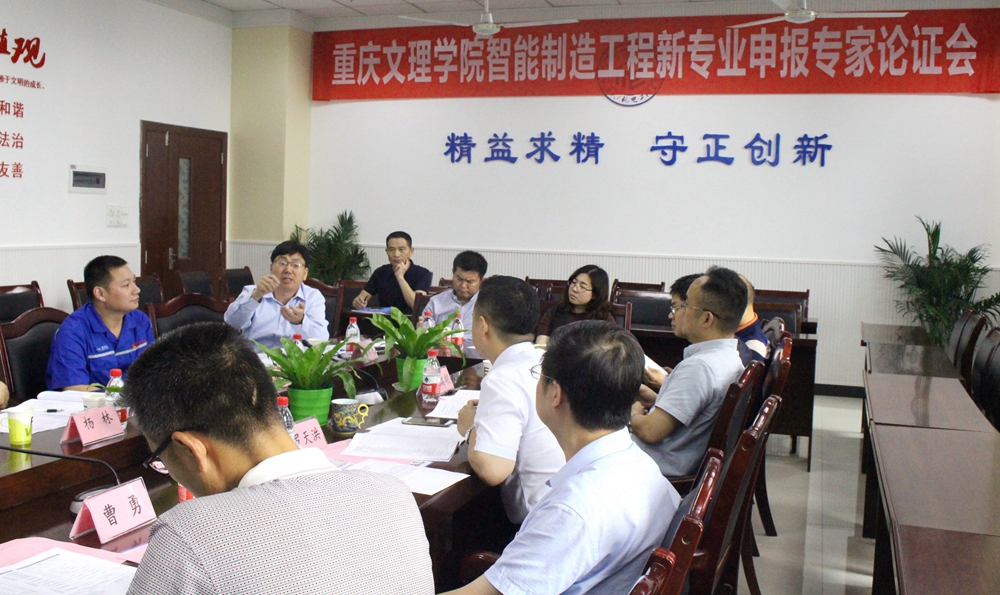 学院党总支书记曹勇致欢迎辞,欢迎和感谢专家们莅临学院指导新专业申报论证和建设。副院长赵华君对拟申报的智能制造工程新专业的前期准备情况及专业申报方案进行了汇报。随后与会专家纷纷对拟申报的新专业提出了一系列有价值和意见和建议,为申报材料的进一步完善和申报成功后的专业建设有着十分重要的指导意义。与会专家表示,增设智能制造工程专业适应国家“中国制造2025”发展战略和制造业转型升级的需求,对接重庆市和西南地区现代制造业对智能装备及制造人才的急需。学校已开办机械工程、机械电子工程、机器人工程等相关支撑专业,开办智能制造工程专业后将形成完整的现代制造工程专业链。专业围绕智能装备和智能制造过程,面向装备和制造产业培养高素质应用型工程技术人才,专业定位和培养目标准确,课程与实践环节设置合理。学校具备良好的专业开设和人才培养所需的专兼职师资队伍、实验条件和实践基地。专业办学凸现新工科建设理念,人才培养全程实施校企协同育人创新模式。专家组一致同意推荐申报该专业。