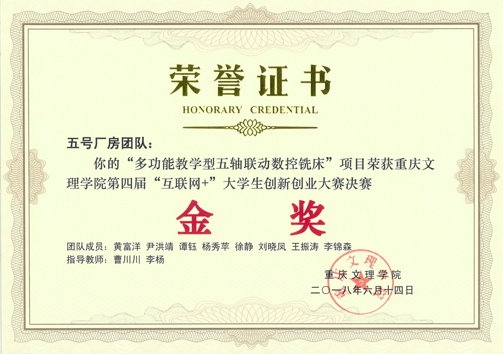本次大赛学校共有630个创业团队报名参加,经过层层选拔,最终有23个团队突出重围进入决赛。本次比赛分为项目展示和评委提问两个环节,参赛项目涉及科技创新、电子商务、节能环保、文化创意、特色效益农业等领域。经过激烈角逐,mansion88主页2015级机械工程专业学生李锦森,成员尹洪靖、杨秀苹、谭钰、刘晓凤、王振涛、徐静等组成的志飞智能科技队凭借 “多功能教学型五轴联动数控铣床” 项目成功获得项目金奖、2017机械工程专业学生王剑峰团队项目开发的“特种焊接机器人”获得银奖,同时2014级机械工程专业学生黄富洋、2016级机械电子工程专业学生吕春年荣获mansion88主页首届“大学生十大创新创业人物”称号,机电工程学院荣获“最佳组织奖”。