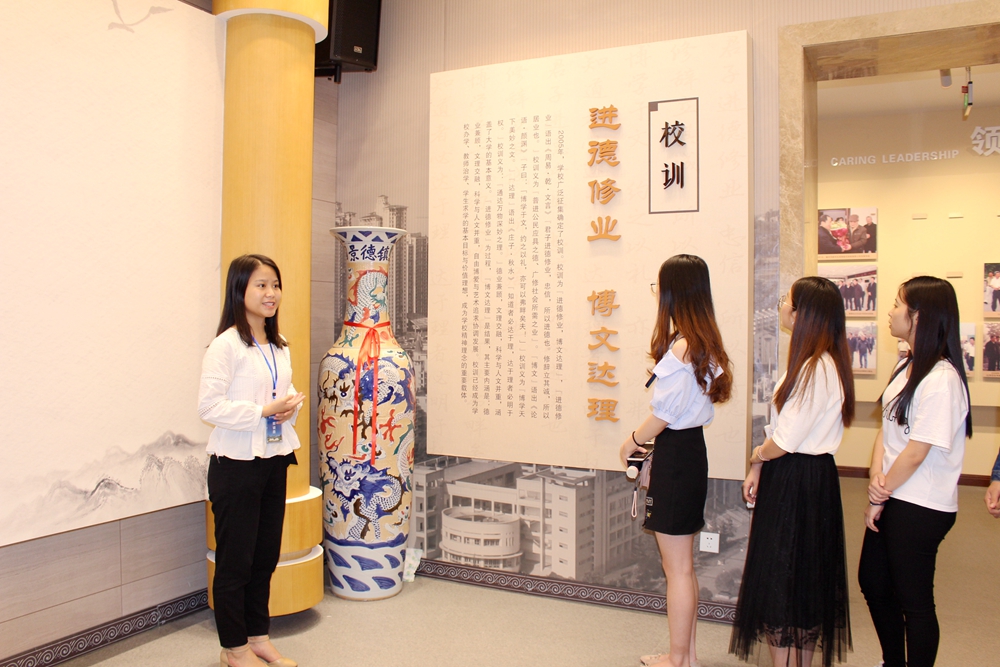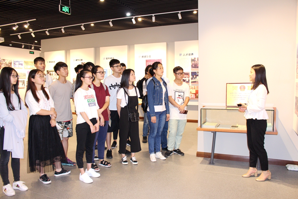 首先,校史馆解说员向全体学员详细讲解了校训、校歌、校标的由来及含义,详细介绍了学校的发展历程、师资力量、学科建设、教学建设、所获荣誉、杰出校友等方面的情况。参观结束后,全体学员在树状型的签名树上工工整整地签下了自己的姓名。
