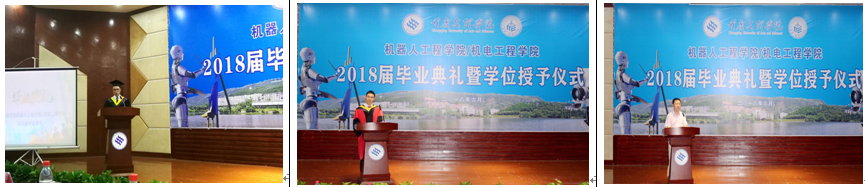 毕业生代表、2014级机械工程(对口)专业学生颜鑫发言。他感谢母校和老师的培育之恩,表示今后将保持积极进取的心态,争取做出更加突出和优异的成绩,以实际行动回报母校的培养。教师代表、机械电子工程系刘辉博士用幽默诙谐的语言与同学们共同回忆了大学生活的点点滴滴,鼓励同学位一定要保持一颗追梦赤子之心。