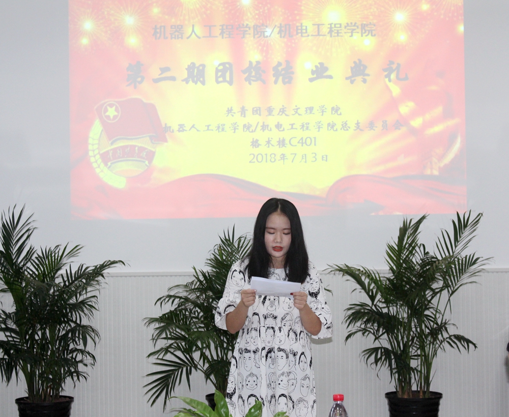 李兴成代表学院团总支做了第二期团校工作总结。本期团校自5月4日开班以来,共举行了包含理论教学、市民学校支教、敬老院献爱心、红色革命教育等活动,参加培训的学员通过一系列理论与实践培训,坚定了理想信念,夯实了理论基础,为更好地度过大学生活动打下了坚实的基础。朱瑶颖宣读了第二期团校优秀学员名单,陈秋竺为获得优秀团校学员的10名同学颁奖。吕韵瑶作为优秀学员代表发言。她回顾了自己参加团校学习后,在理论和实践方面的所得所获,感谢学院所提供的提升自我素质的机会和平台,并表示在今后的学习和工作中,一定会不断努力,争做青年楷模,争做优秀团员青年。