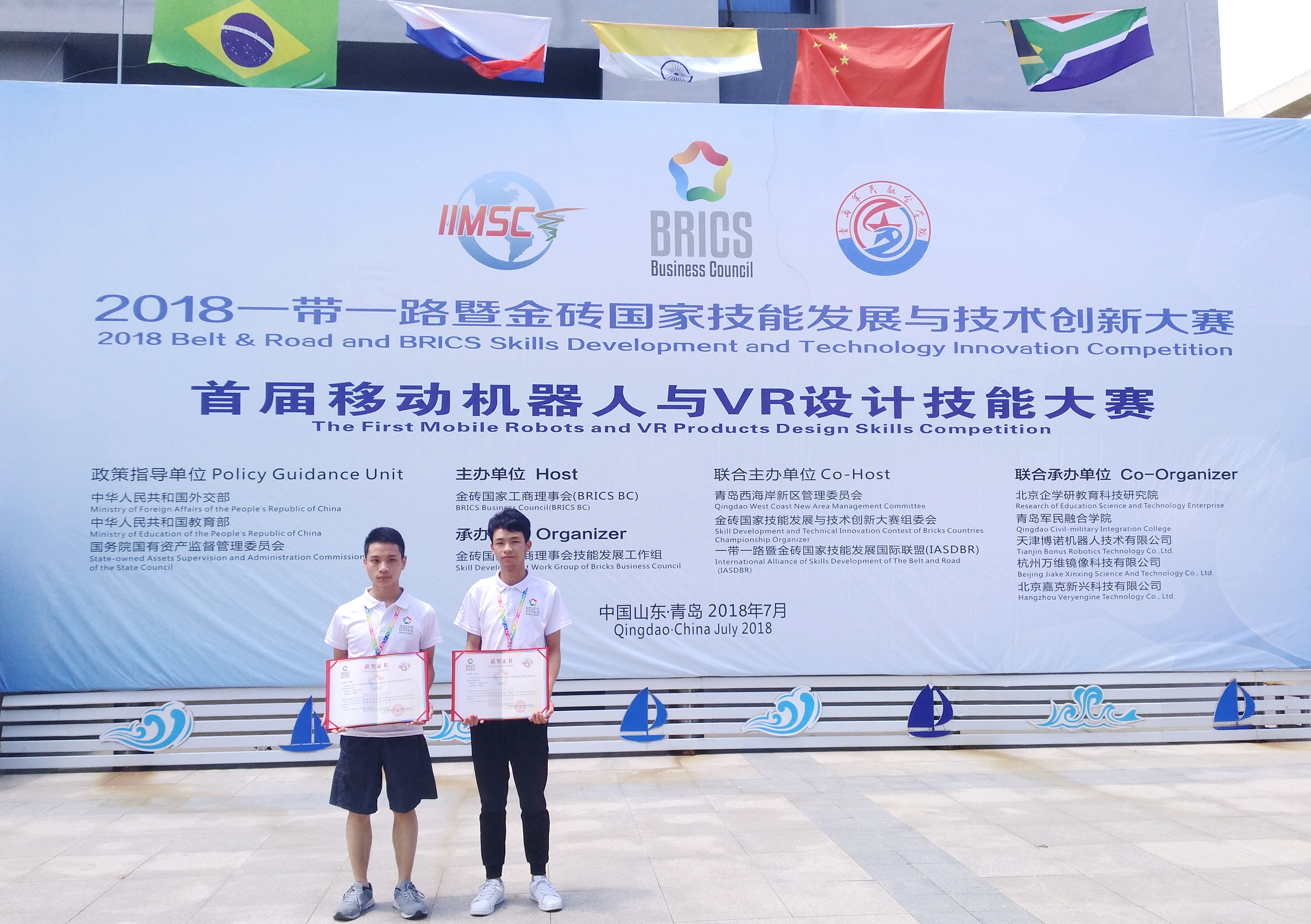 7月13日至16日,2018“一带一路”暨金砖国家技能发展与技术创新大赛系列比赛之一——首届移动机器人与VR设计技能大赛(中国赛区赛+俄罗斯赛区选拔赛)在青岛军民融合学院举行。来自全国18个省市自治区155支代表队、310名选手和18名来自俄罗斯、巴西、印度、南非等金砖国家及一带一路沿线国家奥地利、蒙古、柬埔寨、乌兹别克斯坦、赤道几内亚等国家的选手参加了比赛。