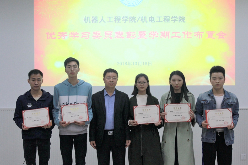 陈庆宣读了学院《关于表彰2017-2018学年第二学期优秀学习委员的决定》,曹勇向受到表彰的优秀学习委员颁发了获奖证书并合影留念。
