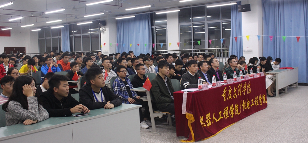 8位选手经过初赛、复赛脱颖而出入围决赛。2018级机器人工程(一本)专业学生刘维维分享了她高考结束后到一家教育培训公司从事营销工作的所得、所感。2017级机械电子工程(长航班)学生廖万明讲述了自己参加第十一届全国大学生先进成图大赛的经历,虽然最终没有获奖,但准备竞赛的过程让他受益良多,也为今后的学科专业竞赛打下了基础。2017级机械电子工程(长航班)陈海涛分享了自己建立永川UT兼职联盟的经历:从想法的萌芽,到付诸实践,到开拓市场,再到建立UT兼职联盟APP,他用自己的实践经历告诉同学们,做任何事情贵在坚持,有了想法要敢于尝试,才能实现梦想。比赛结束后, 2018年重庆市“十大双创明星”、2016级机械电子工程(长航班)吕春年同学分享了自己大学学习、竞赛、创新创业方面的经历。他呼吁学弟学妹要珍惜大学时光,多走进实验室,将学科竞赛和创新创业、科学研究结合起来,将理论和实践结合起来,才会收获与别人不一样的大学生活。