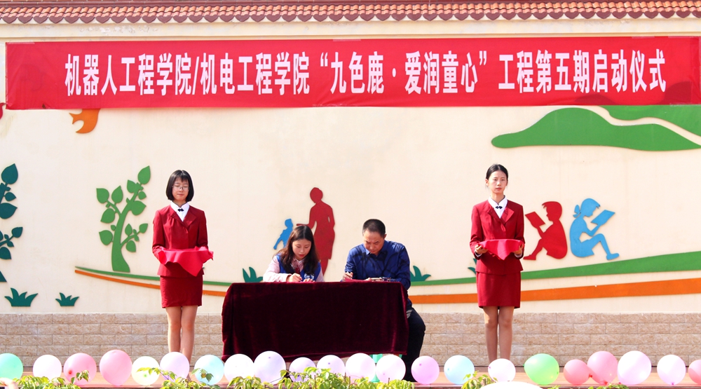 10月31日,机器人工程学院/机电工程学院“九色鹿·爱润童心”志愿服务工程(第五期)启动仪式在陈食镇马银小学举行。马银小学校长黄岗、马银小学少先队辅导员苏公会、学院团总支副书记李兴成、赵芮伶出席启动仪式。马银小学30多名留守儿童和50余名大学生志愿者参加了活动。