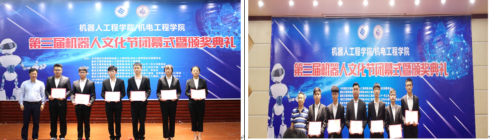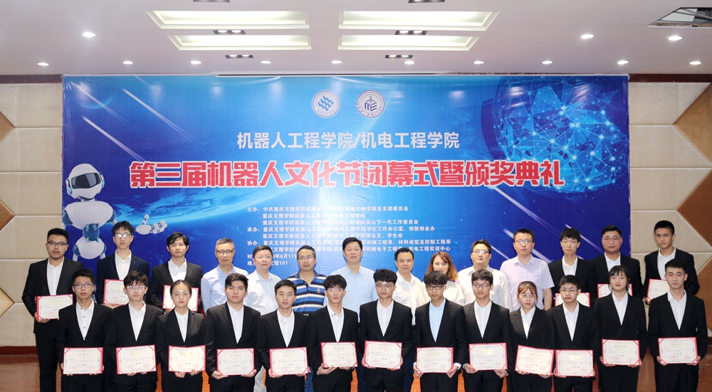 6月17日晚,第三届机器人文化节闭幕式暨颁奖典礼在博文馆101举行。学校教学部部长何万国、学工部部长何独明、学院党总支书记曹勇、院长罗天洪、副院长赵华君颁奖典礼。学院教学办、学工办、实训中心、机械电子工程系负责人、部分专业教师以及2018级学生近200人参加了活动。