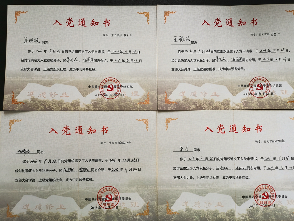 欣闻获评重庆市高校党员示范型寝室后,寝室全体成员倍受鼓舞。寝室成员王雅洁表示,这既是对他们入学以来在学习、工作和生活中取得成绩的充分肯定,也是对全体寝室成员莫大的鼓励和鞭策。在今后的学习和生活中,将不忘初心,牢记使命,认真学习,努力工作,履行党员和当代大学生的责任和义务,从自身做起,从小事做起,自觉发挥党员的先锋模范作用,带动广大同学规范日常行为,引领健康向上的寝室氛围,传播优秀的寝室文化,以党员的先进性为全院同学树立寝室建设的示范和榜样。(撰稿:李兴成;审稿:曹勇)