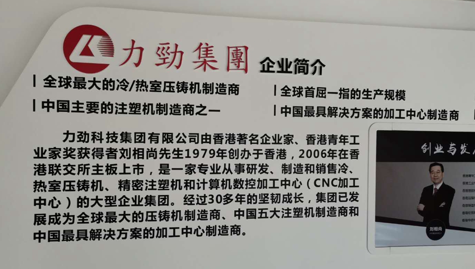 力劲科技集团(以下简称力劲集团)1979 年创立于香港,是以生产压铸机、注塑机、CNC加工中心及周边设备为主的大型香港上市企业集团,是首家参与国家“十五”科技攻关的外资企业。集团生产的系列压铸机荣获2007年中国名牌产品称号,也是迄今为止压铸机行业唯一获此殊荣的企业。旗下重庆力劲机械有限公司正式注册成立于2006年,是力劲集团全资子公司之一。2015年7月,重庆力劲机械有限公司生产基地正式落成。主要从事压铸装备及其周边设备研究、制造、销售和服务,以及CNC加工中心销售和服务,是力劲集团“中国制造2025”示范基地、重庆工业技师学院力劲压铸分院教研和实习基地。