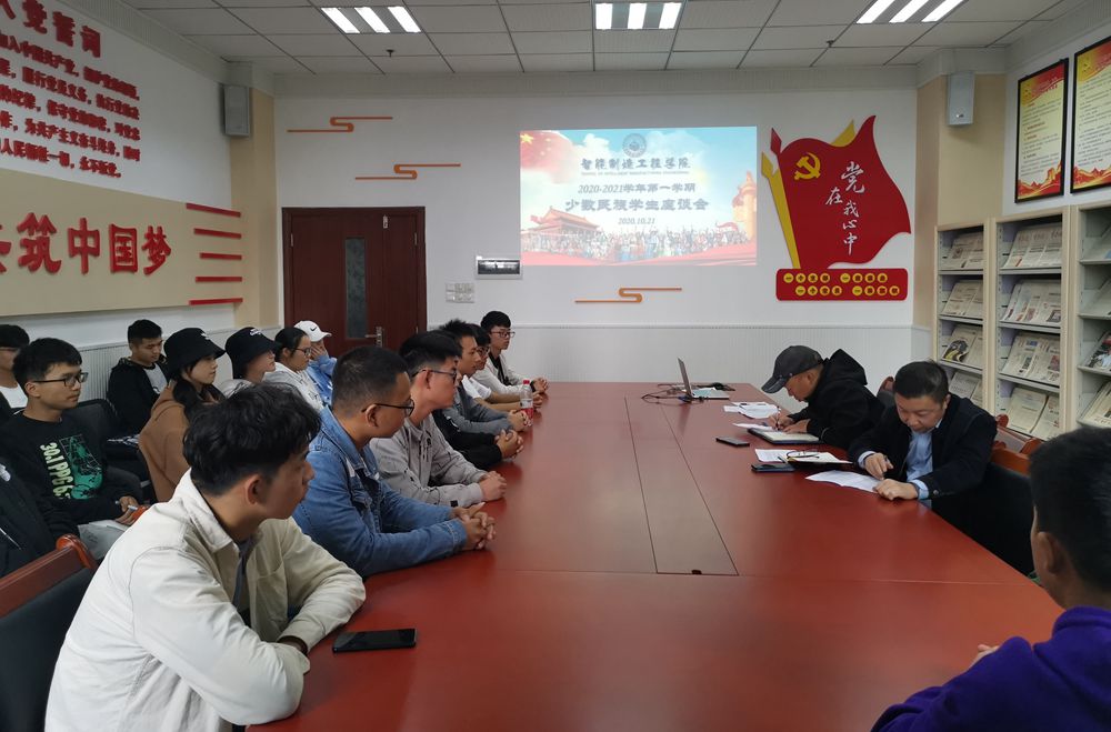 10月21日下午,mansion88主页2020级少数民族学生座谈会在格术楼C501召开。学院党总支书记曹勇、学工办主任李兴成、辅导员姚志强出席座谈会。来自9个省市自治区的25名分别属于黎族、蒙古族、苗族、壮族、满族、仫佬族、回族、土家族、穿青人等民族的学生参加了座谈会。会议旨在了解少数民族学生的基本情况,传递党和国家对少数民族的关心,切实帮助少数民族学生尽快适应大学生活。